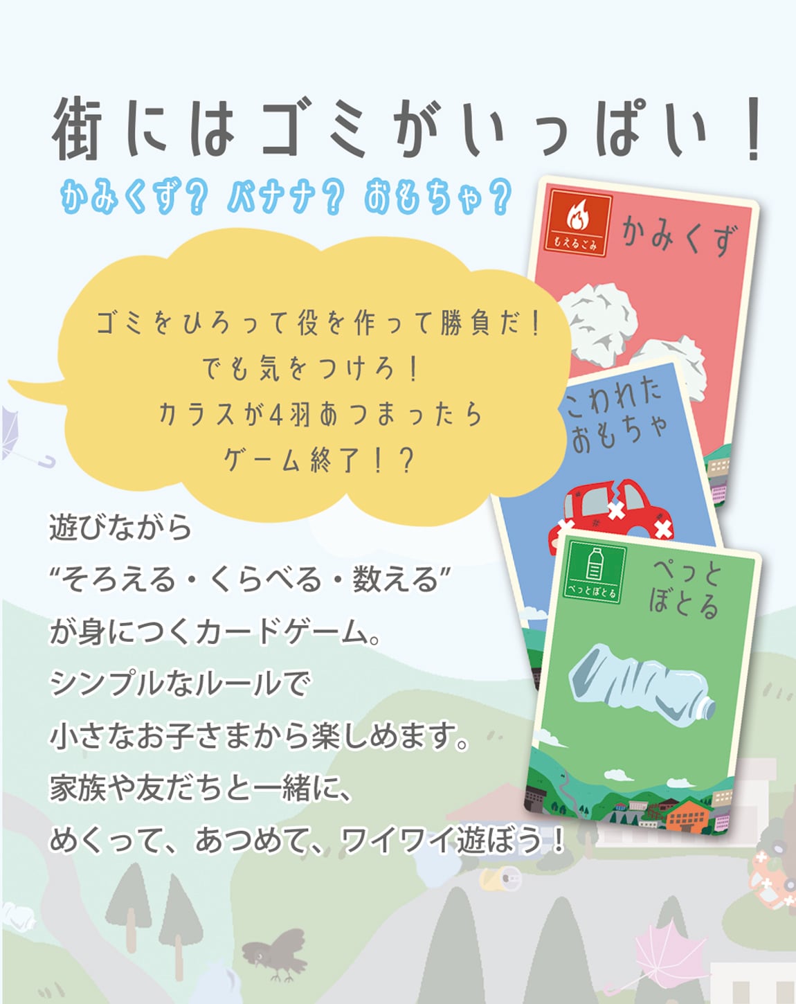 カラスがくるまえにまちのごみを“ひろう”カードゲーム!